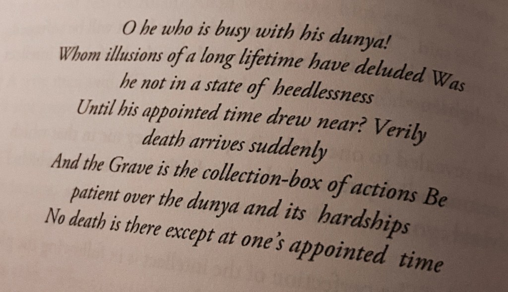 This Ayah serves as a reminder that life is fleeting; a mirage that distracts us from our true, eternal abode. We spend the majority of our days chasing temporary pleasures forgetting that at any moment our existence in this world could end. How often do we hear about someone laughing with friends during the day, gone by nightfall. Another planning their weekend, buried in the ground before it arrives. As Imam al-Bukharī said in his lines of poetry: